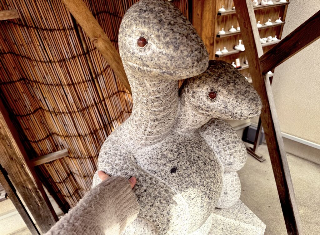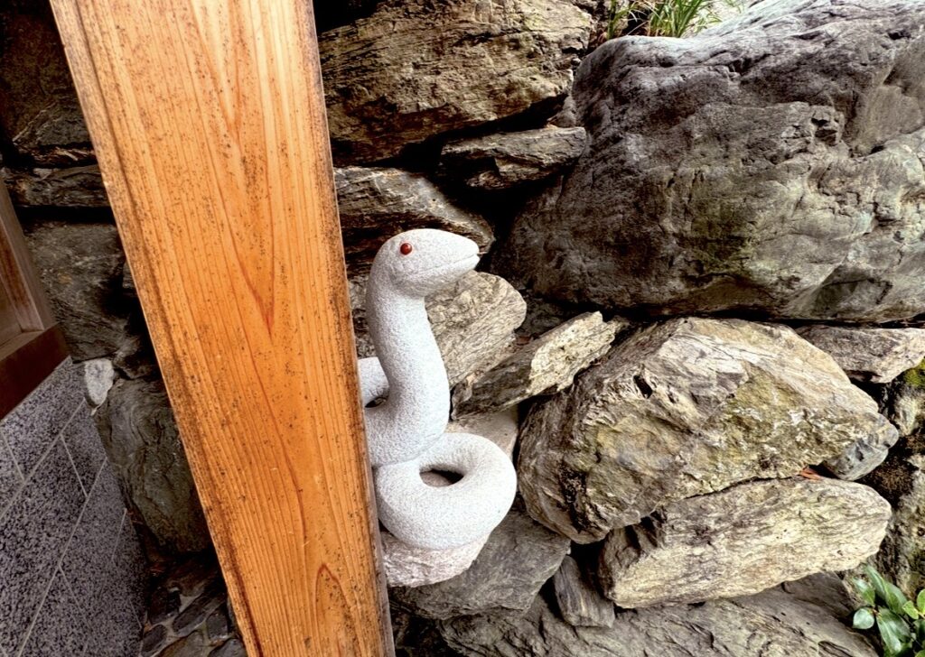 まずは入ってすぐのところにいる「撫で白蛇」をなでます。