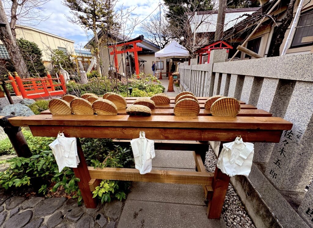 最後にザルを返却したら境内の裏側から