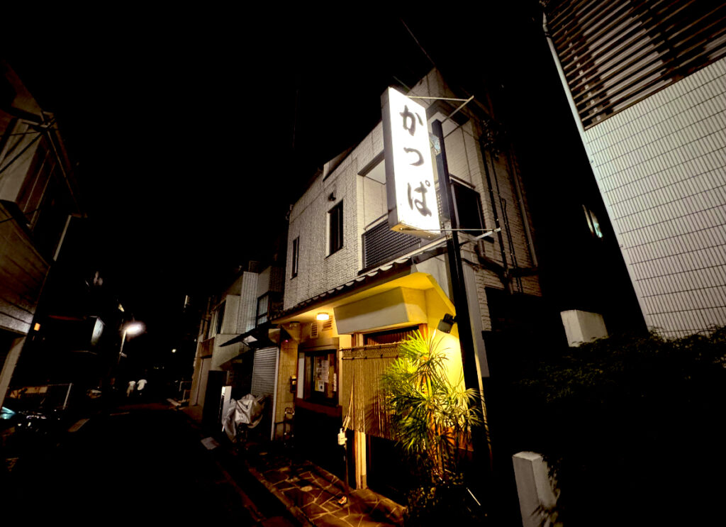 ぼんやりと現れるシンプルな看板「かっぱ」