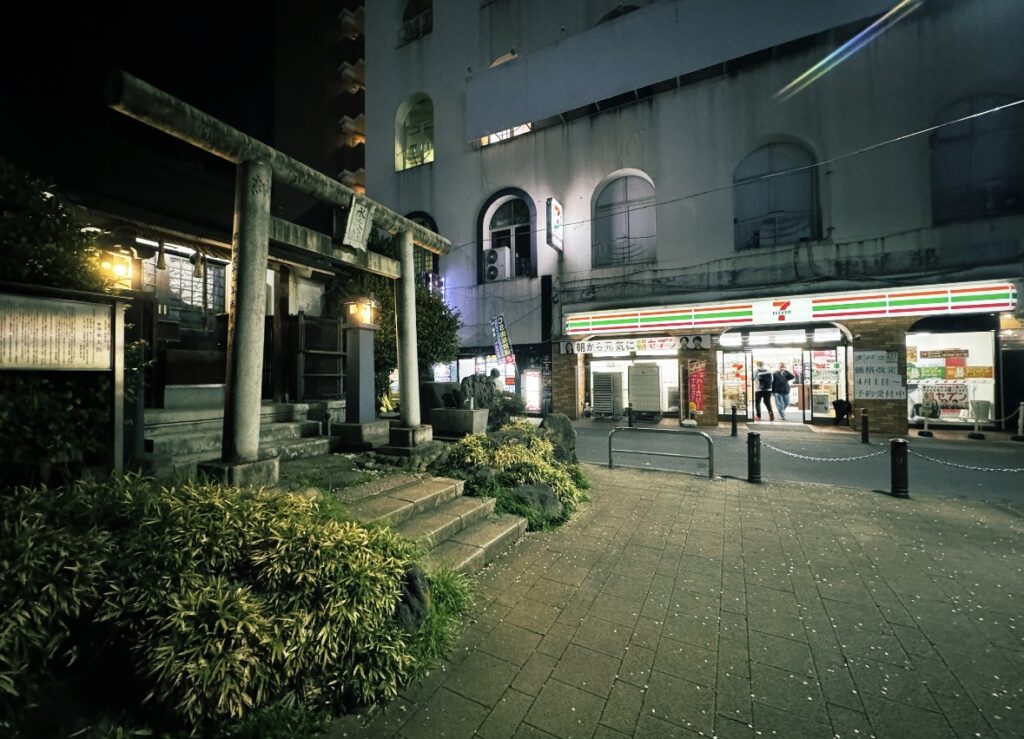 徒歩1分のところにあるセブンイレブンは、真ん前に水天宮という小さな神社があり↓