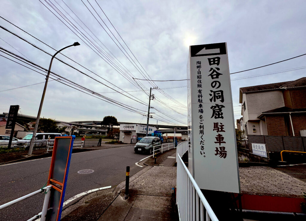 車の場合は、田谷の洞窟・専用の駐車場も