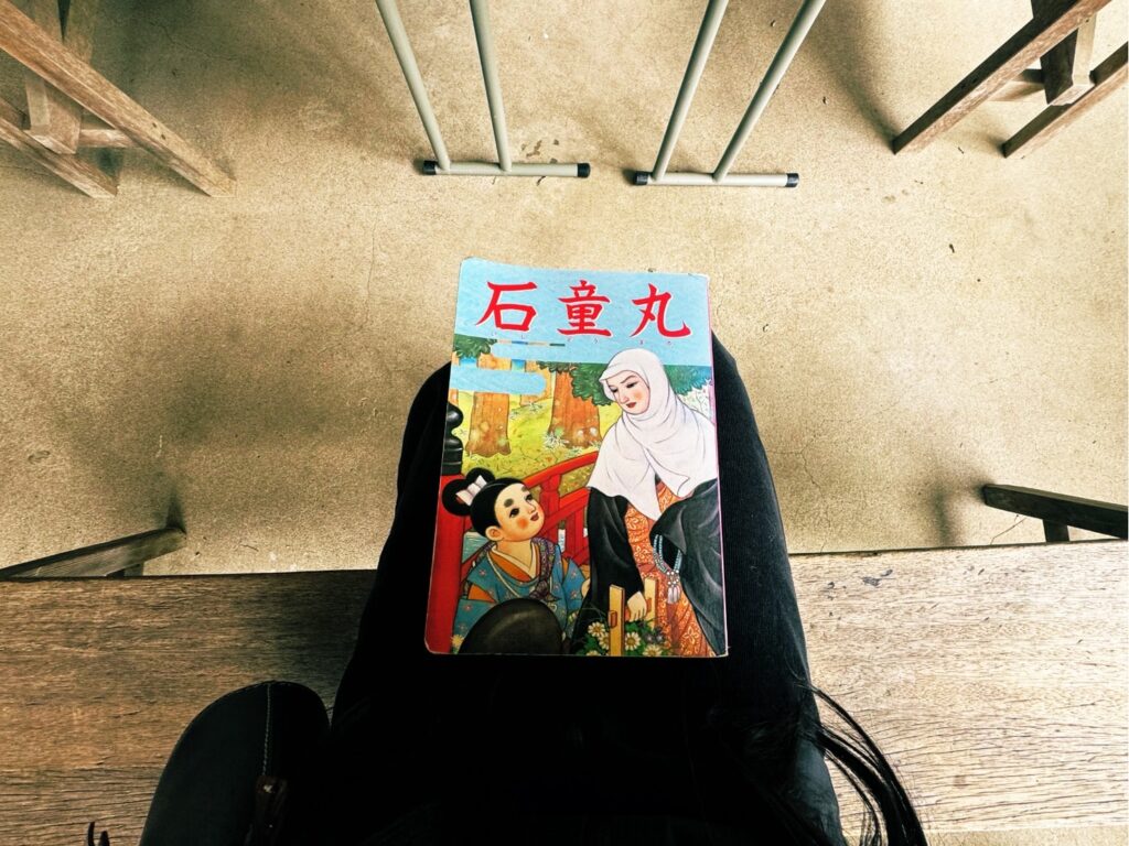 一冊だけ置かれた、石童丸の絵本や