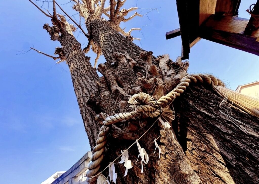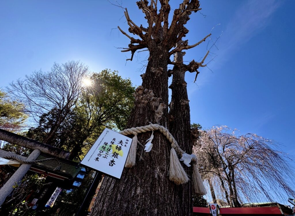 縁結びイチョウと呼ばれる、たまたま隣に植えた男イチョウと女イチョウが