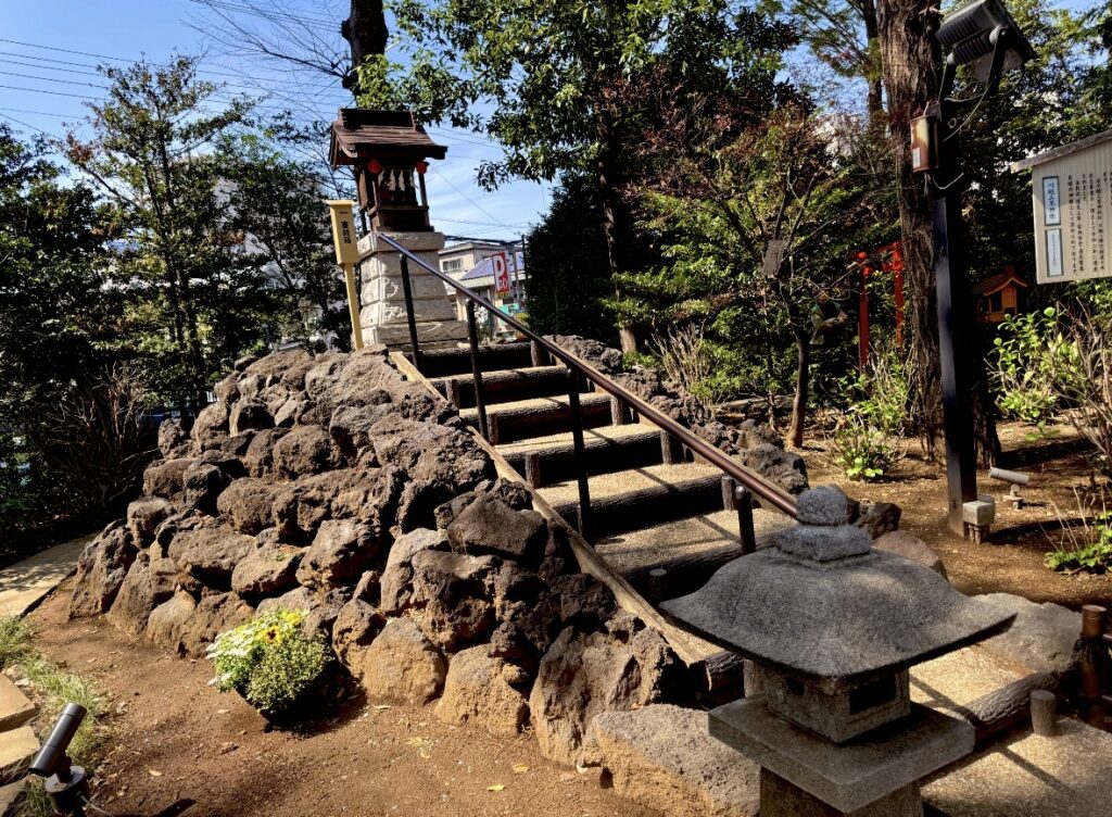 電車の場合は「東口」から出ると、こちらの「赤い鳥居」まで