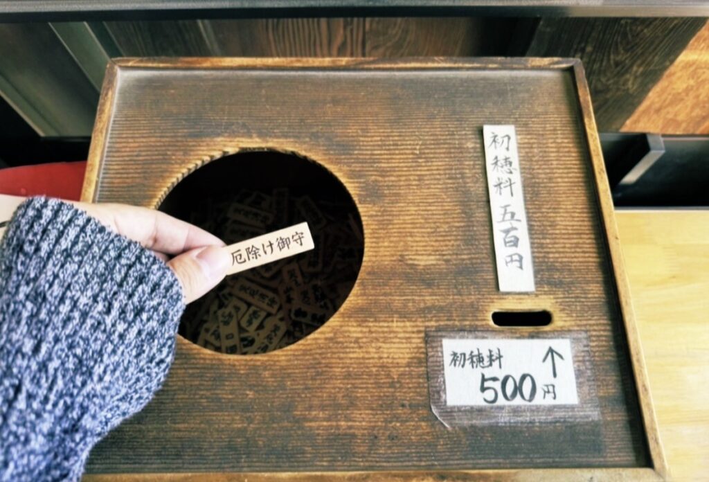 自分の名前を書いて備え付けの箱の中に奉納すると厄が落ちるのだとか↓