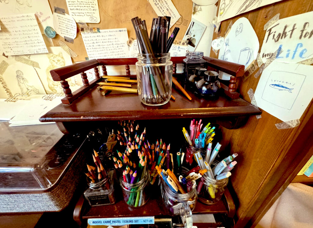 おしゃれなレターセットや、文房具も貸しだしてくれて