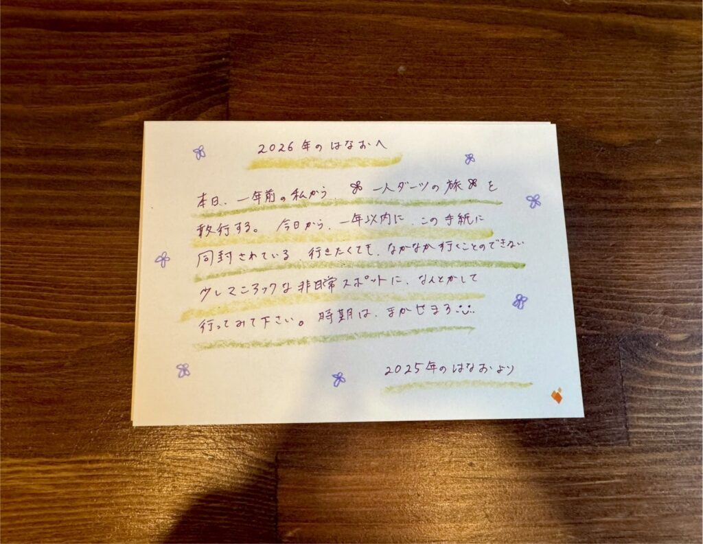 ⚫︎ 未来の自分に手紙を書く、という非日常的な体験ができる。